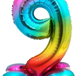 Folat Balon Foliowy Stojący Cyfra 9 Tęczowa 81Cm