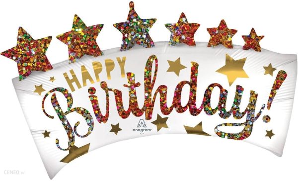 Balon foliowy z napisem Happy Birthday! z brokatowymi gwiazdkami, idealna dekoracja na urodziny.Wymiary: 86 x 48 cm.Opakowanie: 1 szt.Balon można napełniać powietrzem lub helem.