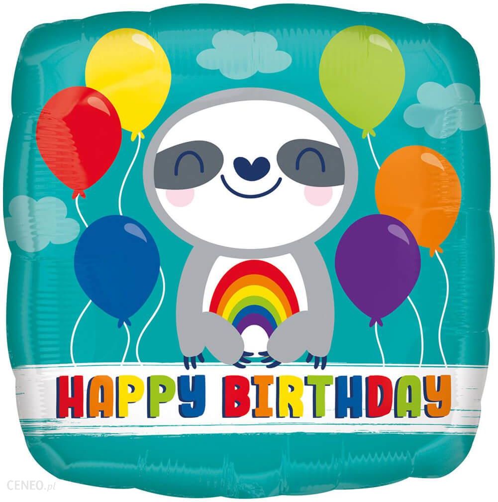 Balon foliowy urodzinowy Happy Birthday z leniwcem.Wielkość: cm.Opakowanie 1 szt.Balon można napełniać zarówno powietrzem jak i helem.