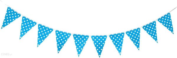 Niebieski baner flagi w białe kropy, groszki wykonany z papieru, idealna dekoracja na urodziny.Długość: 220 cm.Opakowanie: 1 szt.