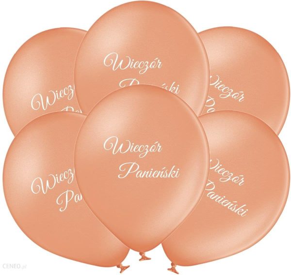 Wysokiej jakości balony lateksowe z nadrukiem Wieczór Panieński.Kolor: różowe złoto, rose gold.Balony firmy Belbal.Średnica: 31 cm.Opakowanie: 50 szt.
