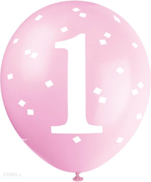 Balony urodzinowe różowe z białą cyfrą 1.Idealne na roczek i urodziny.Średnica: 30 cmOpakowanie: 5 szt.