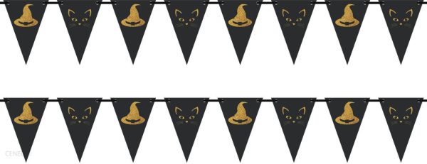 Baner flagi z zestawu Czarownica i kot z czarną wstążką.Do baneru można dołączyć dowolny element, baner jest składany samodzielnie.Długość wstążki: 500 cm. Wysokość flagi: 15 cm.Opakowanie: 1 szt.
