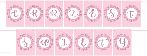 Papierowy baner flagi, girlanda różowa na chrzciny dla dziewczynki. Baner składa się z 13 dużych flag i wstążki. Zestaw DIY.Wymiary flagi: 14×20 cm. Długość tasiemki 5m.