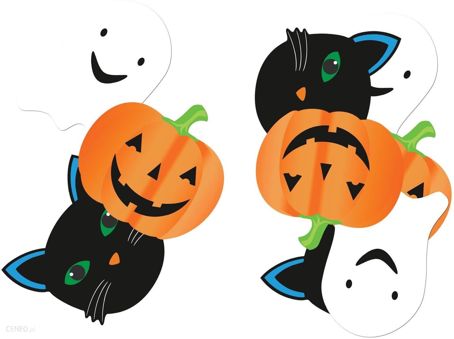 Dekoracja papierowa z duszkiem, kotem i dynią na Halloween.Można użyć jako konfetti, dekoracja ściany lub okna.Rozmiary dekoracji: ok. 10 cm x 10 cm.Opakowanie: 12 szt.