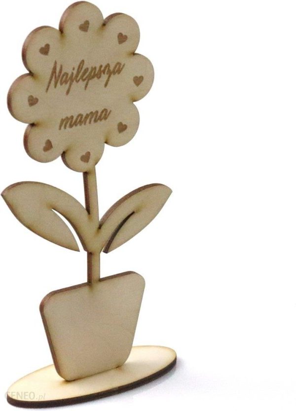 Drewniana dekoracja z napisem Najlepsza mama, idealny prezent na dzień matki.Materiał: sklejka 3 mmKolor: naturalnyWysokość: 16 cm.Wymiary podstawki: 8 x 3,5 cm.