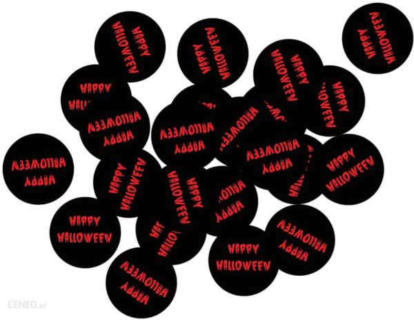Konfetti papierowe z krwawym napisem Happy Halloween. Konfetti z dwustronnym nadrukiem.Średnica: 4 cm.Opakowanie: 36 szt.