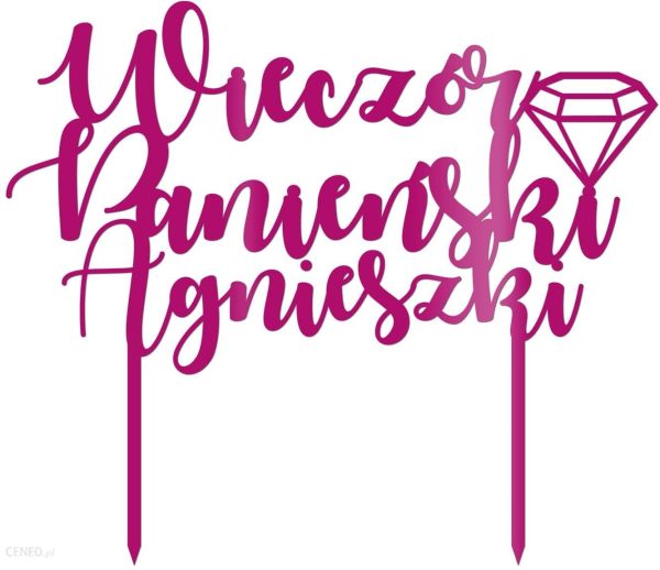 Napis Wieczór Panieński z diamentem i imieniem, dekoracja tortu na Wieczór Panieński.Wielkość: dekoracja 20×17,5 cm.Opakowanie: 1 sztKolor: różowyMateriał: plexiglas, bardzo mocny i wytrzymałyMateriał posiada certyfikat do kontaktu z żywnością