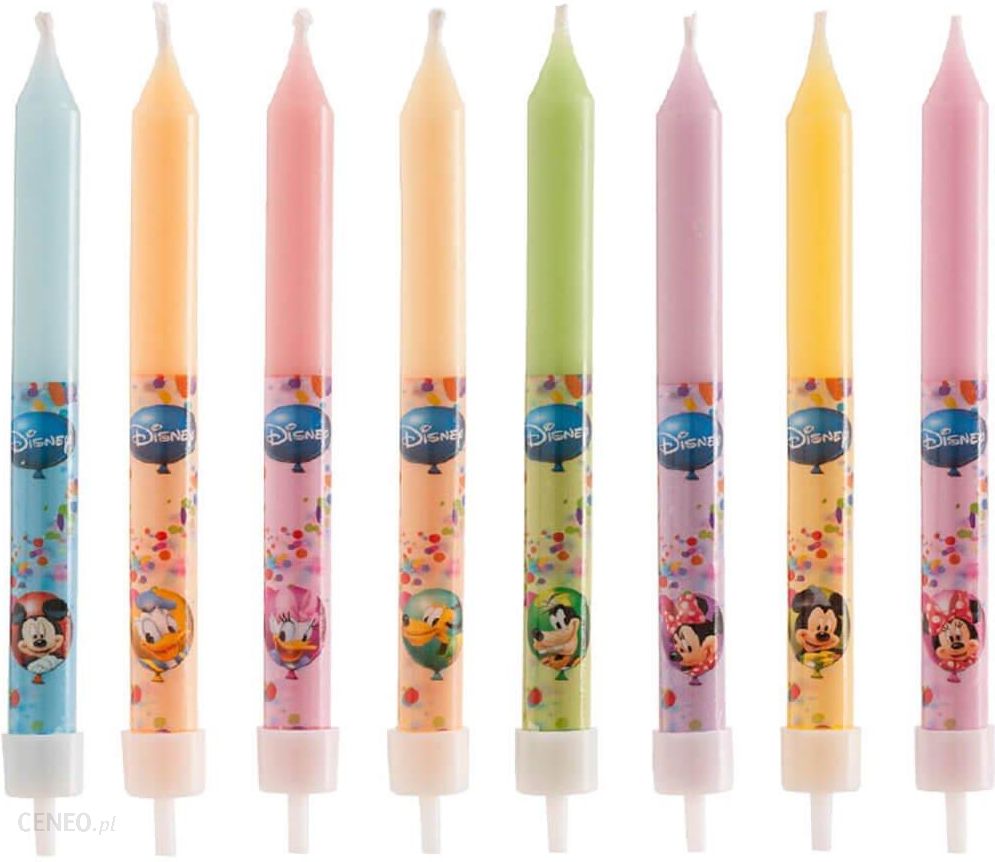 Świeczki klasyczne Myszka Miki i przyjaciele.Wysokość: 9 cm.Opakowanie: 8 sztuk świeczek i 8 sztuk podstawek.