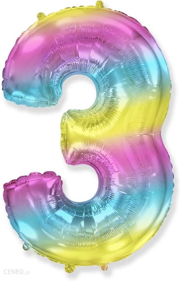 Balon foliowy cyfra trzy pastelowe ombre, posiada specjalne uchwyty ułatwiające montaż.Wielkość: 85 cm.Opakowanie: 1 szt.Balon można napełniać zarówno powietrzem jak i helem.