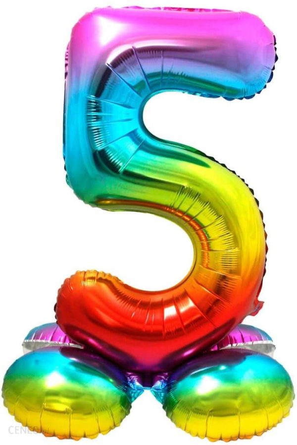 Balon foliowy cyfra pięć 5 w kolorach tęczy z podstawą.Wysokość: 81 cm.Opakowanie: 1 szt.Balony są przeznaczone do napełnienia powietrzem.