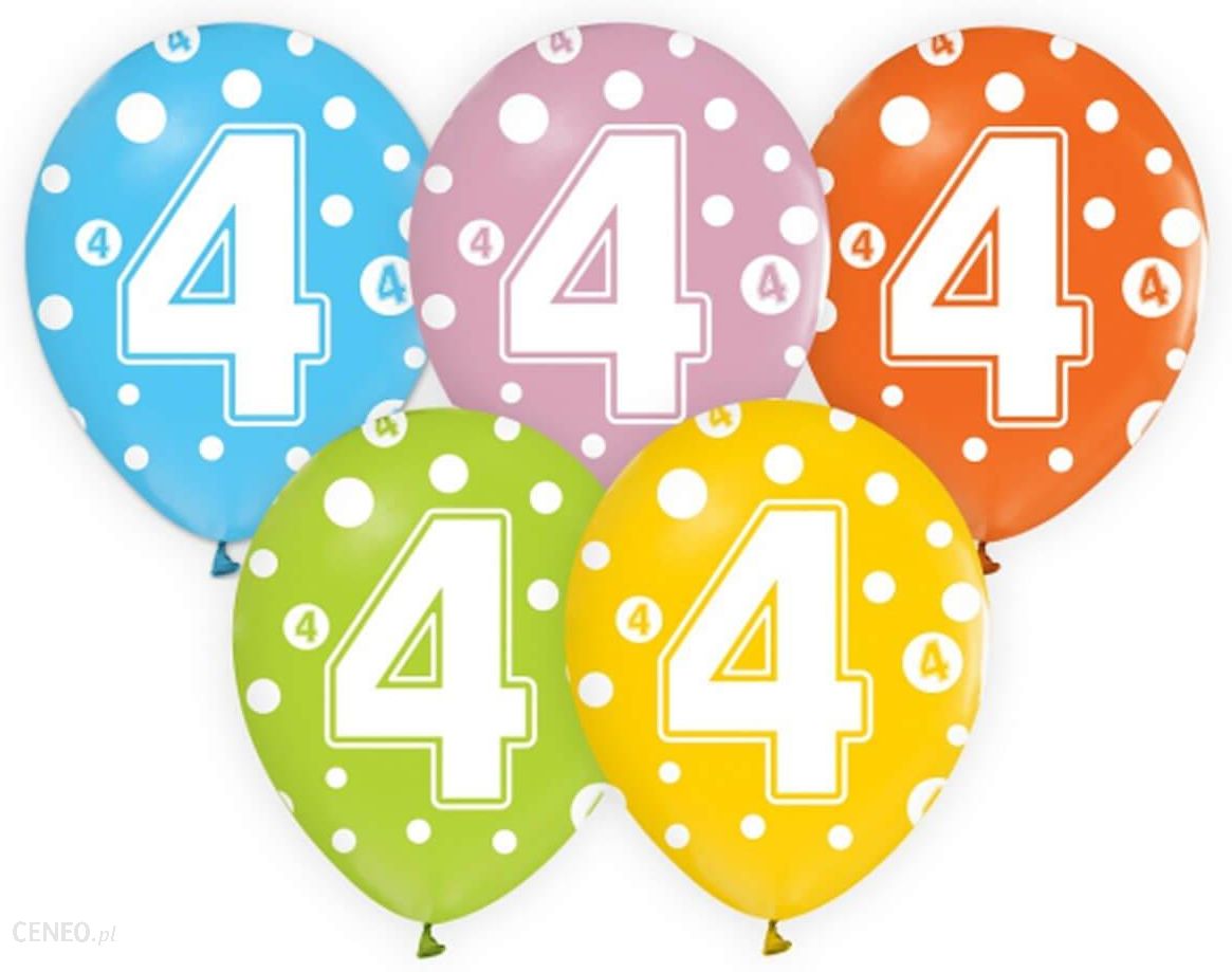 Godan Balony Lateksowe Z Cyfrą 4 Mix 30Cm 5Szt