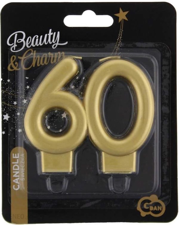 Świeczka cyferka „60” w kolorze złotym, idealna na sześćdziesiąte urodziny.Wysokość: 8 cm.Opakowanie: 1 szt.