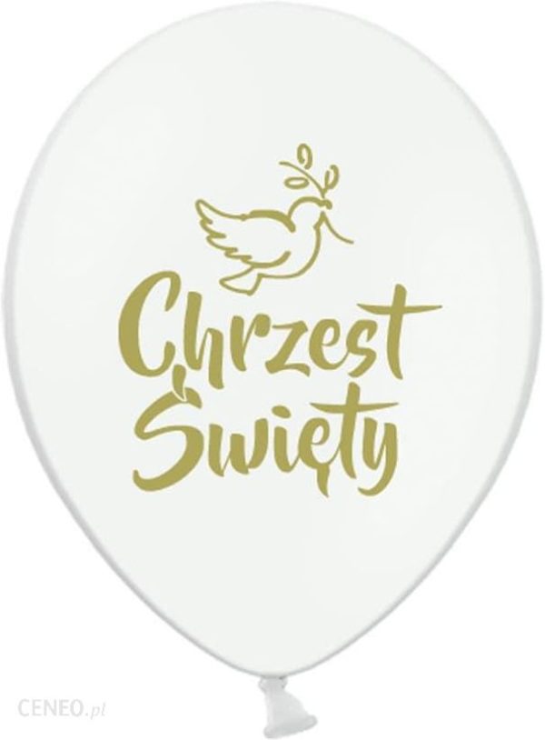 Wysokiej jakości balony na chrzciny. Balony w kolorze białym ze złotym nadrukiem.Wielkość: 30 cm.Opakowanie: 25 szt.