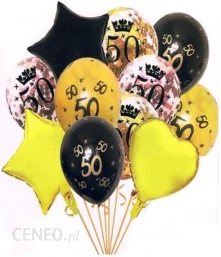 Zestaw balonów urodzinowych Cyfry „50” 30-46cm Mk-Trade BSC-426-50 11 sztukZestaw balanów „50” urodzinowych pakowanych po11szt. o wielkości 30-46cm 1 szt. złota tasiemka. Możliwość napełnienia powietrzem lub helem.Cechy:- Idealny na imprezę urodzinową- Rozmiar produktu: 30-46 cm- Rodzaj wypełnienia: powietrze lub hel- Materiał wykonania: folia, latekst- Kolor: czarne, złoteW zestawie: – 2 szt. gwiazda balon foliowy 46 cm,- 1 szt. serce foliowe 46cm, – 2 szt. lateksowe czarne z cyframi 30cm, – 2 szt. lateksowe złote z cyframi 30cm, – 4 szt. transparentne z konfetti i cyfrą 30 cm, – 1 szt. złota tasiemka