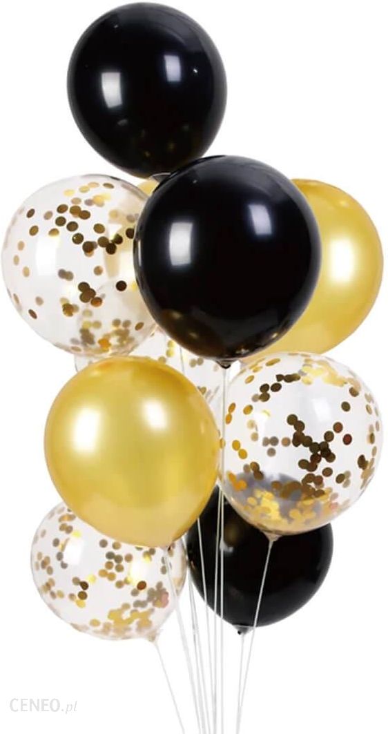 Pal Balony Lateksowe Czarno Złote Mix Z Konfetti 30Cm 6Szt