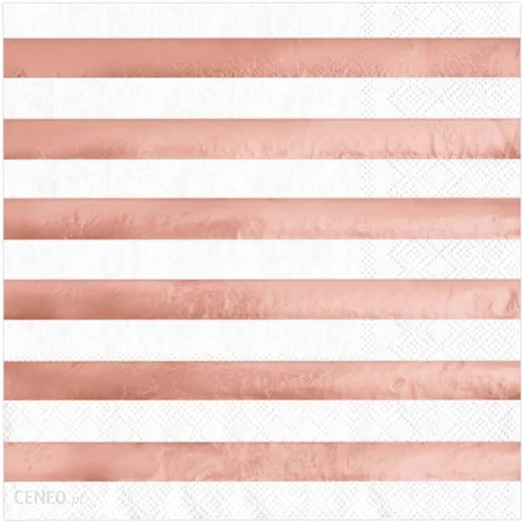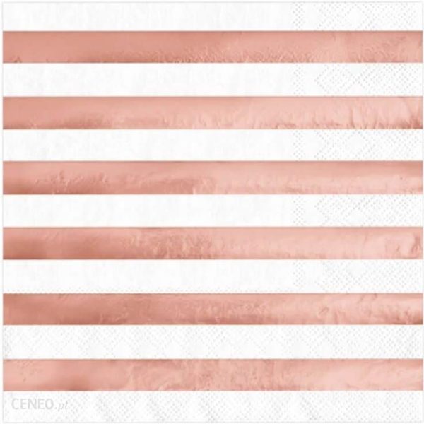 Serwetki w kolorze białym w różowo-złote paski.Wymiary: 33 x 33 cm (po rozłożeniu).Opakowanie: 10 szt.metalizowane