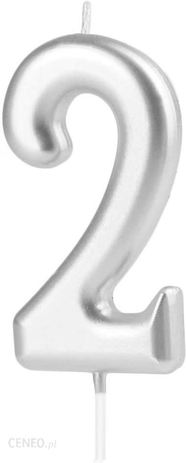 Srebrna świeczka urodzinowa cyfra dwa.Wysokość świeczki: ok 10 cm.Opakowanie: 1 szt.