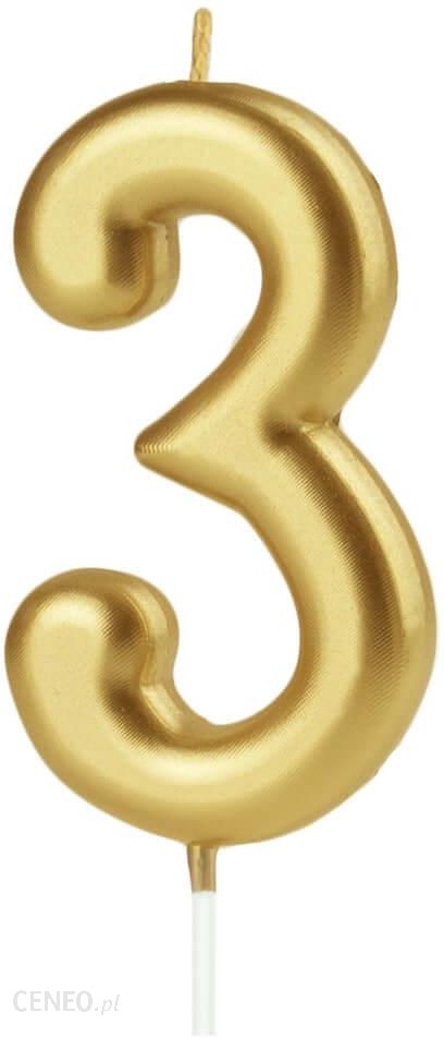 Złota świeczka urodzinowa cyfra trzy.Wysokość świeczki: ok 10 cm.Opakowanie: 1 szt.