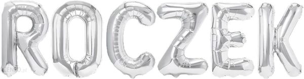 Zestaw balonów foliowych tworzących napis Roczek w kolorze srebrnym.Do balonów dołączona jest słomka.Wysokość: ok. 40 cm.Opakowanie: 1 komplet.