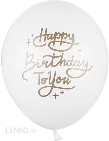 Balony Strong Happy Birthday To You w kolorze Pastel Pure White ze złotym nadrukiem.50 sztuk w opakowaniu.Średnica – ok. 30 cm.