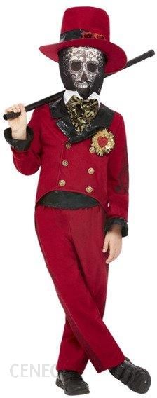 Zestaw zawiera:frakspodnieimitację koszulipasekmaskękapeluszBordowy strój zdobiony złotymi guzikami oraz naszywką.Spodnie na gumce.Imitacja koszuli oraz pas zapinany na rzepy.Maska z cienkiej siateczki z nadrukiem.Kapelusz zdobiony kwiatami.