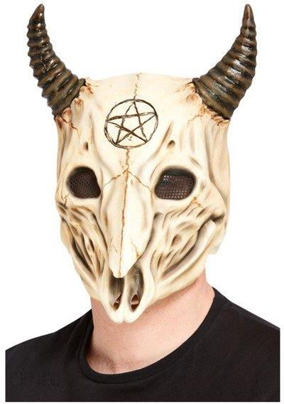 Satanistyczna maska z rogami i pentagramem.Przedstawia czaszkę martwego zwierzęcia.W miejscu czoła wyryty ma satanistyczny znak pentagramu.Siateczka w otworach na oczy umożliwiająca widzenia.Maska lateksowa, zakładana przez głowę.Liczne cieniowania