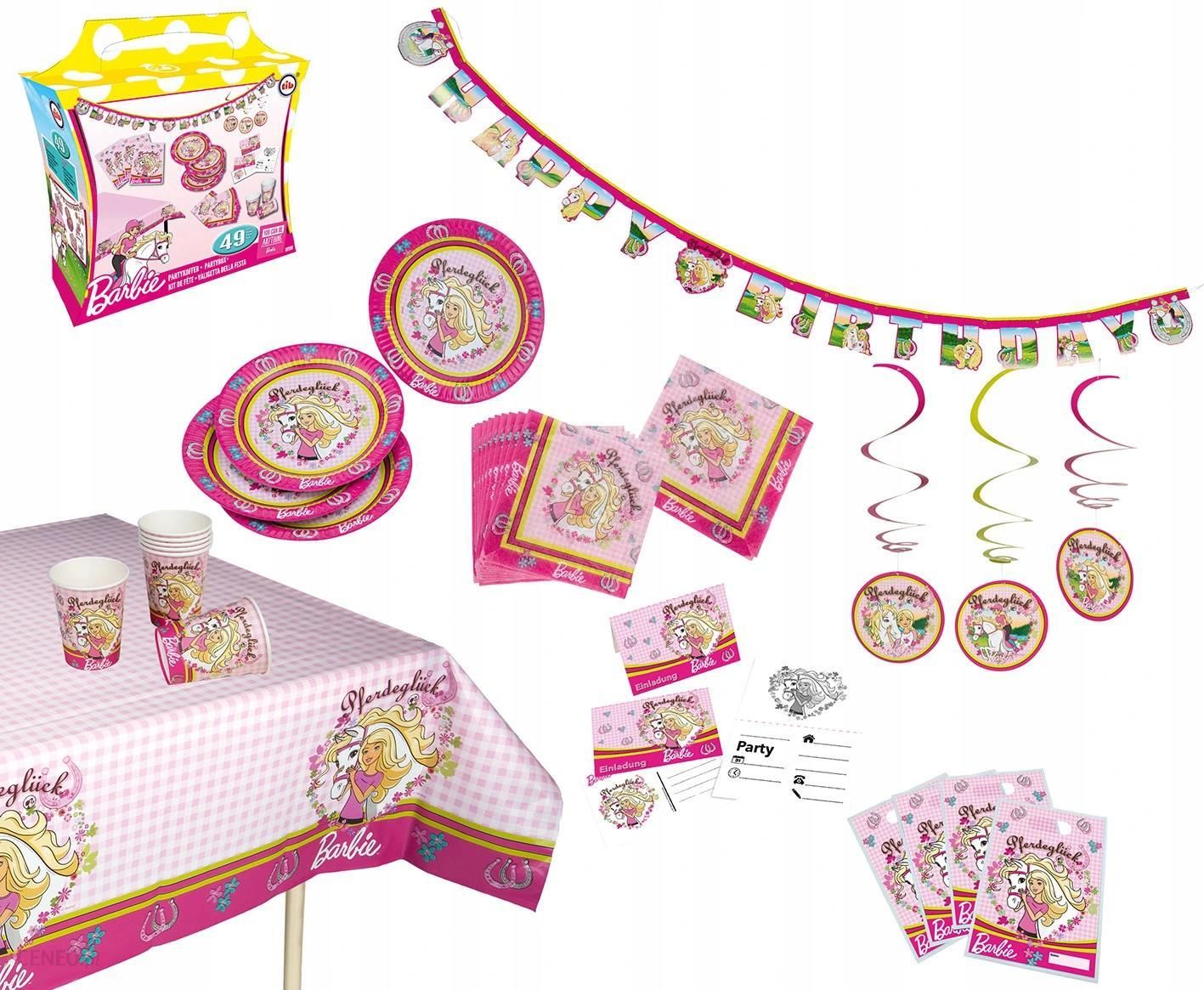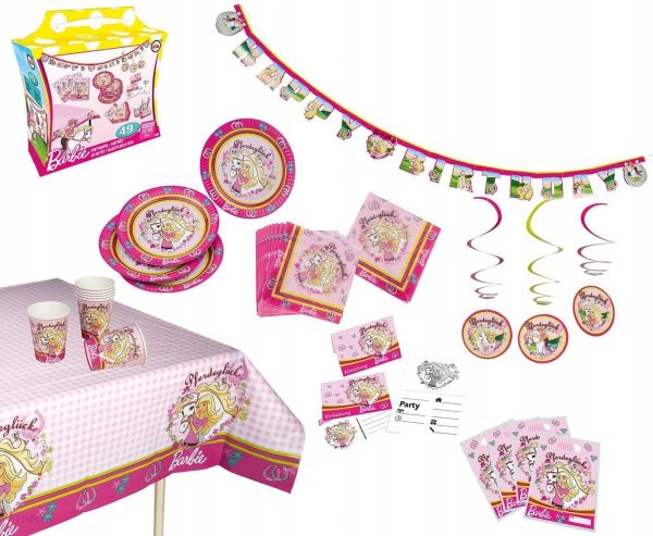 TIB ZESTAW IMPREZOWY BARBIE PAPIEROWY RÓŻOWO BIAŁY