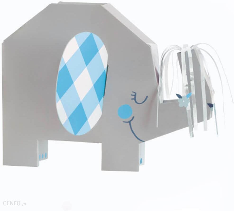 Dekoracja stołu w kształcie szarego słonika z niebieskimi elementami na baby shower lub roczek chłopca. Wymiary: wys. 18 cm x szer. 23 cm x gł. 23 cm.Opakowanie: 1 szt.