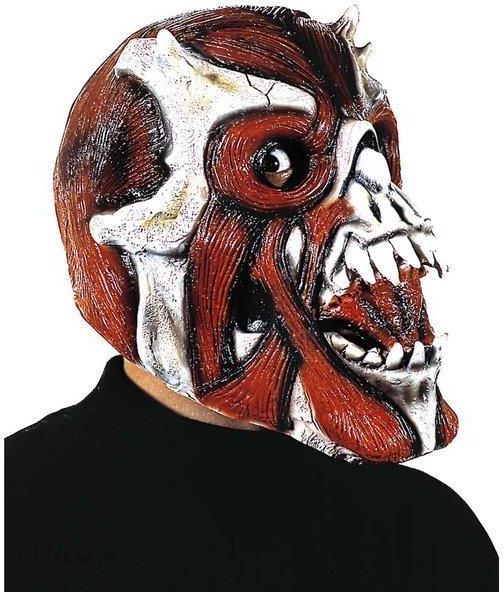 Maska lateksowa w kolorze czerwonym.Przedstawia głowę zombie z zębami.Posiada otwory na oczy, nos i usta.