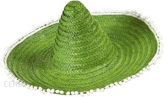 Sombrero Zielone z Pomponikami, Nakrycie Głowy, kolor zielony, średnica 50 cm100% PALM LEAF