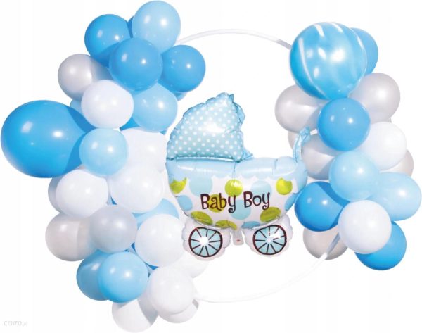 Zestaw do stworzenia girlandy balonowej w kolorze niebiesko-białym to idealna dekoracja na roczek, baby shower lub chrzest chłopca.Opakowanie: 58 szt.