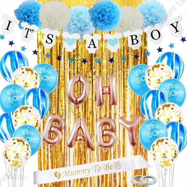 Zestaw balonów i rekwizytów na Baby Shower- „ITS A BOY” Zestaw balonów i rekwizytów pozwoli na udekorowanie przyjęcia, na którym będziecie świętować zbliżające się nadejście Waszej pociechy. Kolorystyka i napis zestawu zdradzi płeć dziecka- „ITS A BOY”. Dekoracja stworzy wyjątkowy oraz niepowtarzalny klimat podczas imprezy. Idealna do organizacji przyjęcia zarówno w domu jak i w plenerze. Zestaw stworzy piękne tło do pamiątkowych zdjęć z Baby Shower. Główne cechy: zestaw balonów to idealna dekoracja Baby Shower, balony należy napełniać powietrzem lub helem, zestaw balonów unosi się po napełnieniu helem, kolorystyka i napis zdradzi płeć dziecka. Zestaw balonów i rekwizytów na Baby Shower zgodny jest ze zdjęciem opisowym.